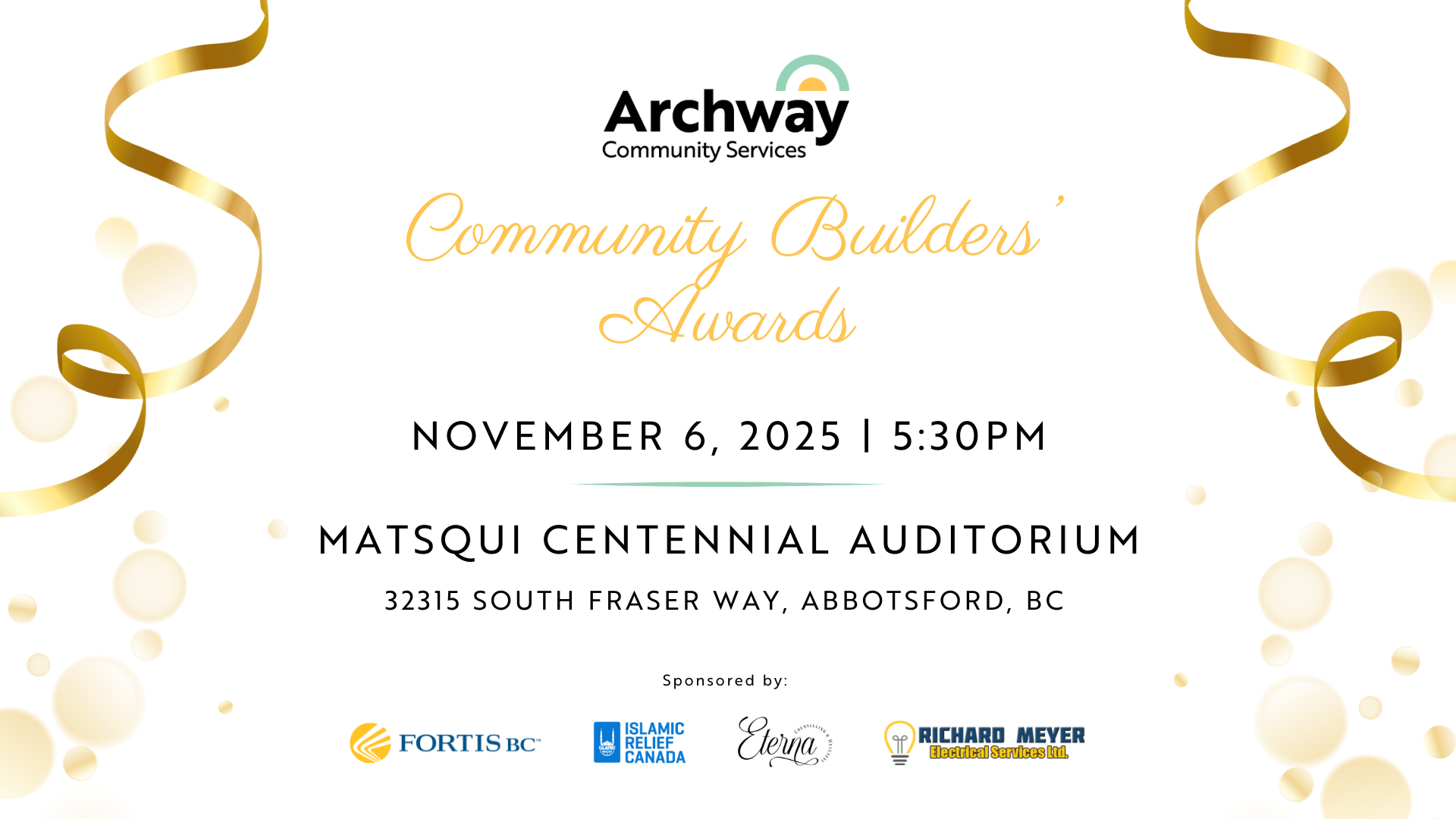 Join us for the 2025 Community Builders’ Awards on Thursday, November 6th at the Matsqui Centennial Auditorium for an inspiring evening recognizing those who go above and beyond to make our community thrive.