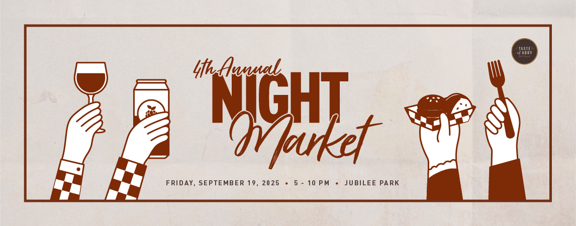 19sep5:00 pm10:00 pm4th Annual Taste of Abby Night MarketJoin us for the 4th Annual Taste of Abby Night Market, an open-air celebration of local food, drink, music, and community! Rain or shine, this beloved event kicks off the Taste of Abby Fall Festival with an unforgettable evening under the stars.5:00 pm - 10:00 pm(GMT-07:00) Jubilee Park, 2552 McCallum Rd