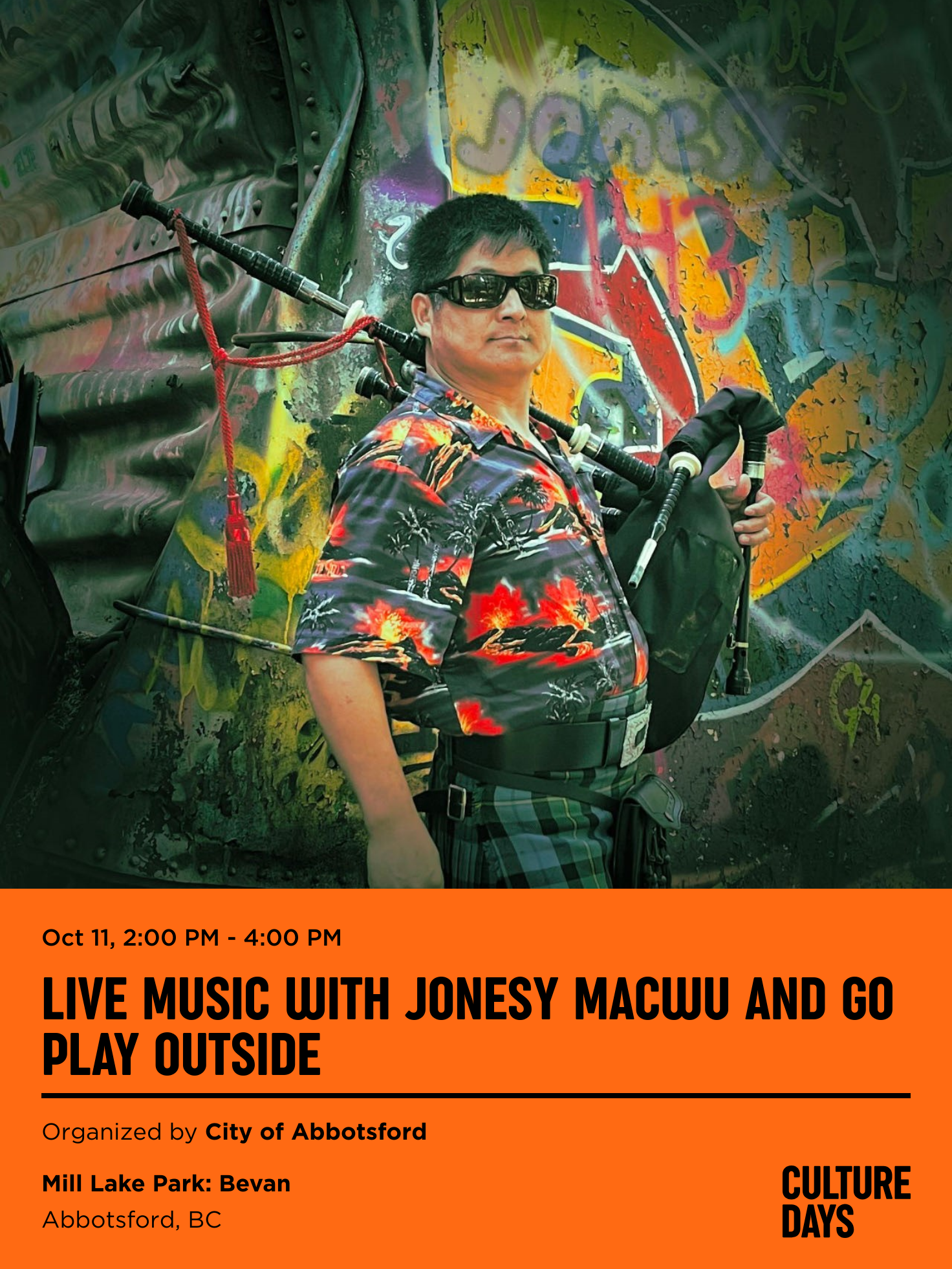Drop-in and enjoy a live performance at Mill Lake Park from Jonesy Wu in association with Go Play Outside.