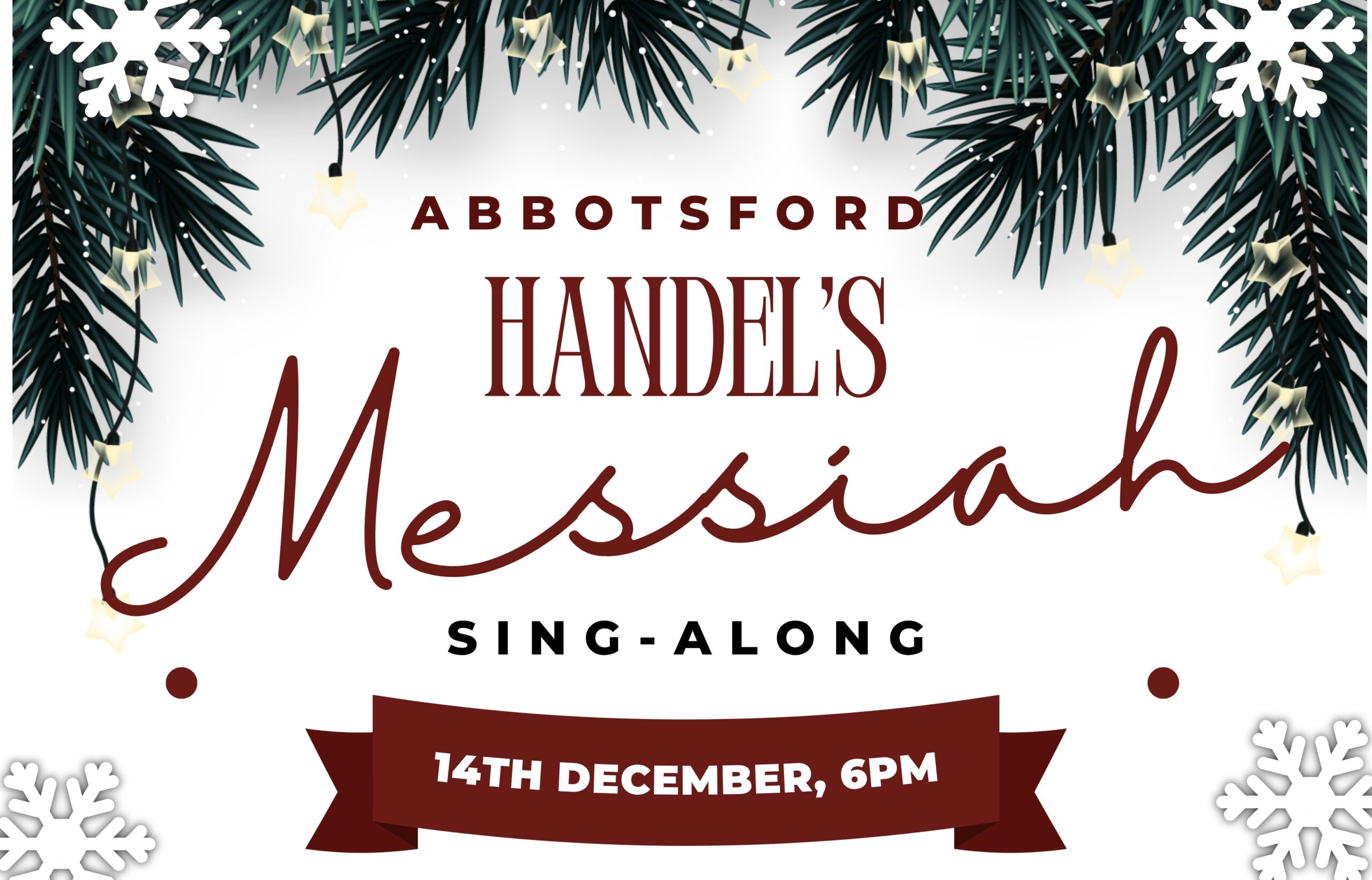 Please join us for a Handel’s Messiah Sing-Along! Sunday, Dec. 14 at 6:00pm The Church of Jesus Christ of Latter-day Saints 30635 BLUERIDGE DR, ABBOTSFORD, BC FREE